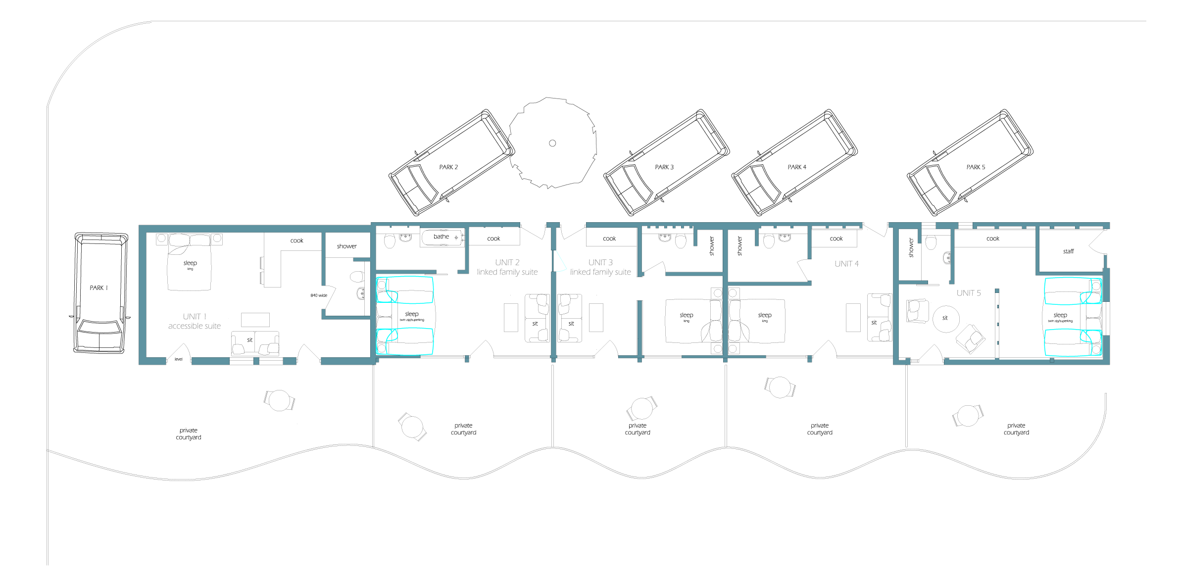 – Each lodge sleeps two guests